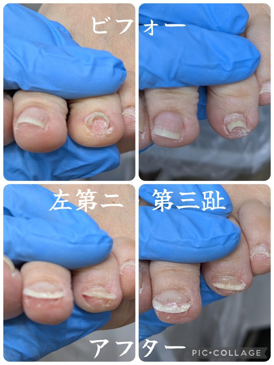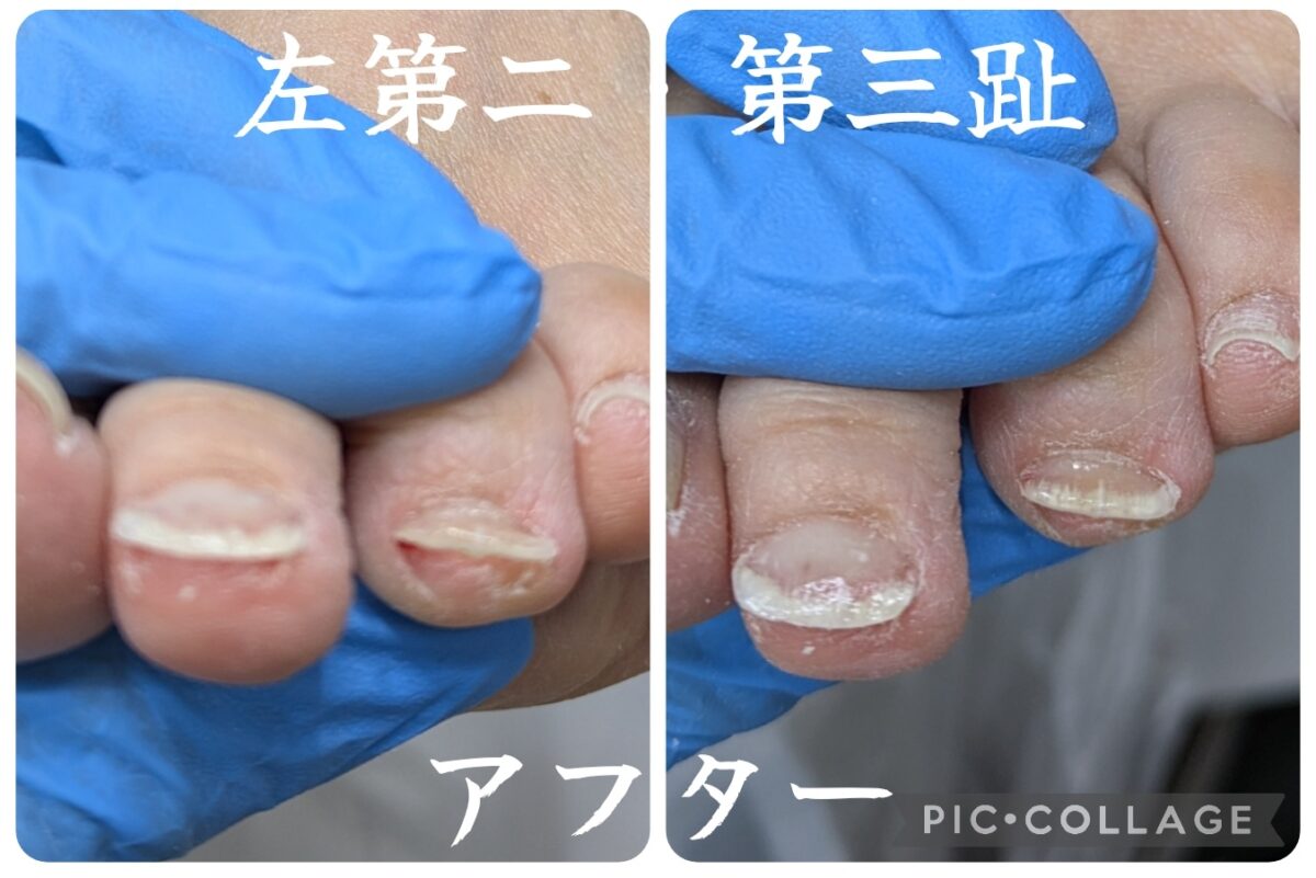 母趾(親指)に比べて爪が柔らかいので、一度の施術で平べったい爪になりましたね