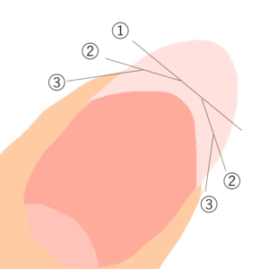 短すぎると深爪、長すぎると割れやすくなります。ちょうど指先と同じくらいがベストです。
