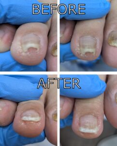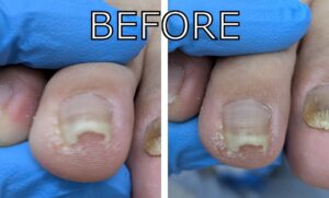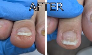 小さい指に爪は、母趾とは比べ柔らかいので、一度の施術で広がりましたね。