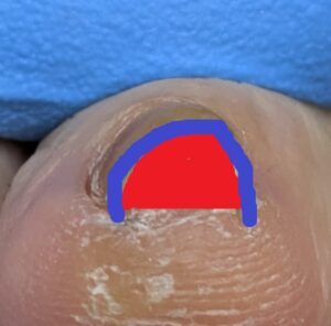 巻き爪ということなので、角質は取り除いて爪を広げてみました。