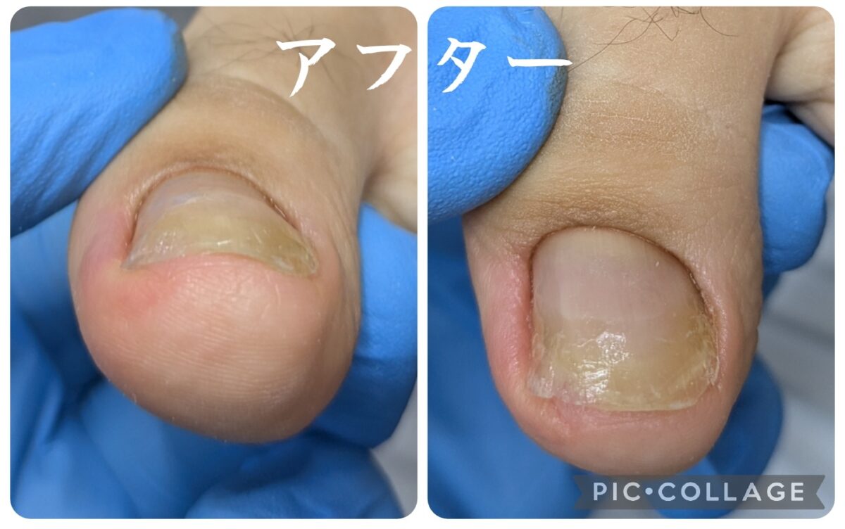 ただし、お爪の割れている隙間を丁寧に処理して巻き爪ケアを行います